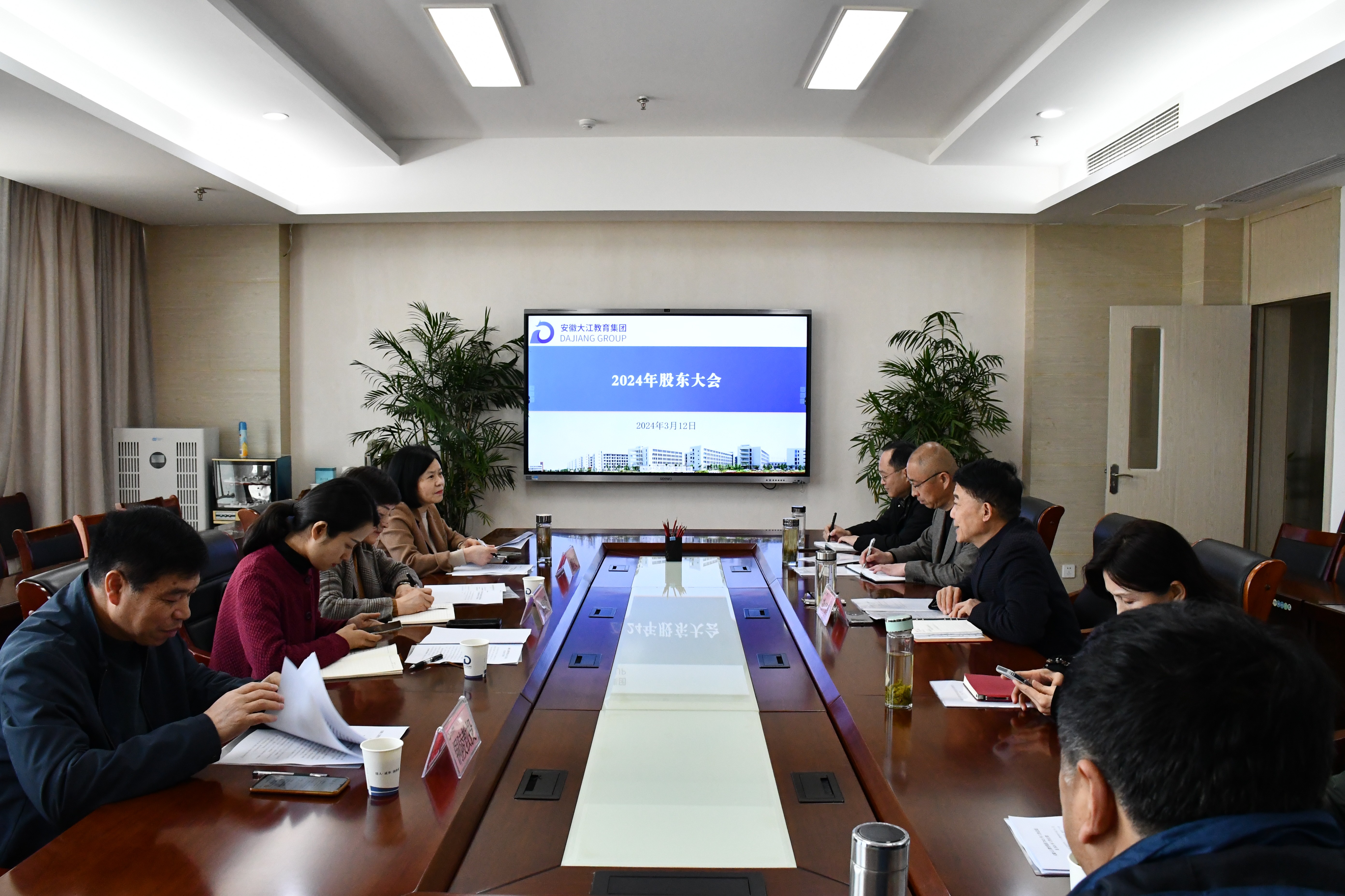 阳春三月,草长莺飞。3月12日上午,安徽大江教育集团2024年第一次股东大会在集团总部七楼第五会议室召开。股东单位代表市建投公司(新西湖发展有限公司)副总经理吴国月、市文投公司副书记陈世民、铜陵职业技术学院(市教投公司)工会主席王富春等领导出席会议。