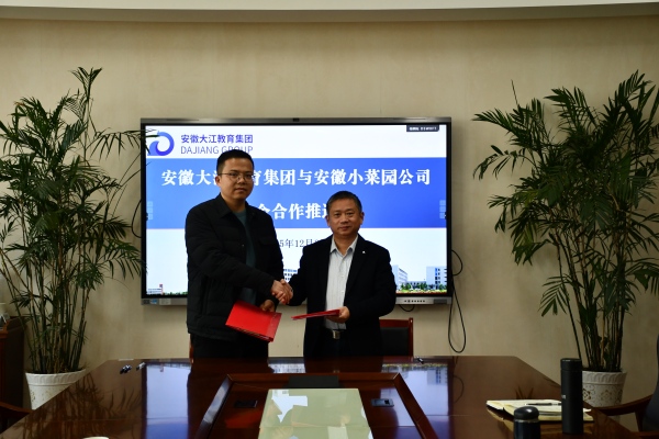 在全体与会人员的见证下,集团党委书记、董事长杨益与安徽小菜园供应链有限公司法定代表人吴晨辉共同签署了校企合作协议。双方代表握手合影,标志着此次合作正式启动。
