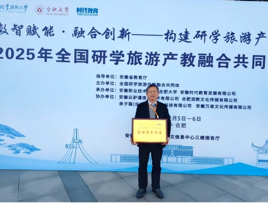 12月6日,以“数智赋能·融合创新——构建研学旅游产教融合新生态”为主题的全国研学旅游产教融合共同体成立大会在合肥隆重召开。本次大会由安徽省教育厅、安徽省文化和旅游厅指导,全国研学旅游产教融合共同体主办,安徽职业技术大学、合肥大学、安徽时代教育发展有限公司承办,汇聚了全国研学旅游领域的院校、企业代表共商发展大计。安徽大江教育集团党委书记、董事长杨益受邀出席大会,并代表集团接受“全国研学旅游产教融合共同体副理事长单位”授牌,标志着集团在研学旅游产教融合领域的发展获得全国行业层面的认可。