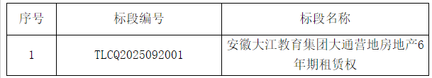 三、基本信息:安徽大江教育集团大通营地房地产6年期租赁权。房产面积约17816.23㎡,包括教学楼B、C,图书馆,学生宿舍楼D、E楼,食堂,门卫室等。本次拍 卖按每平米年租金价格进行竞价。拍卖参考价53.85元/㎡/年(约5756423.91元/6年,具体以《房屋租赁合同》为准),竞买保证金20万元。