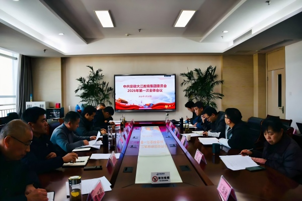 2026年1月15日,安徽大江教育集团在综合楼七楼第五会议室召开2026年度第一次党委会议暨第一次董事会。集团党委委员、董事及各部门负责人参加会议,集团党委书记、董事长杨益主持会议。